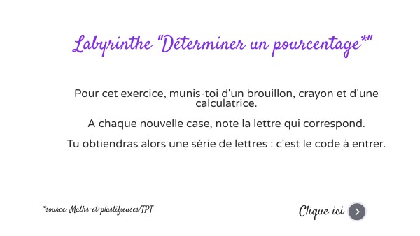 Pour cet exercice, munis-toi d'un brouillon, crayon et d'une calculatrice.A chaque nouvelle case, note la lettre qui correspond. Tu obtiendras alors une série de lettres : c'est le code à entrer.