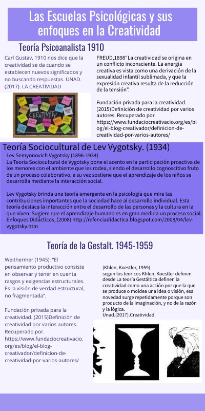 Fundación privada para la creatividad. (2015)Definición de creatividad por varios autores. Recuperado por. https://www.fundaciocreativacio.org/es/blog/el-blog-creativador/definicion-de-creatividad-por-varios-autores/