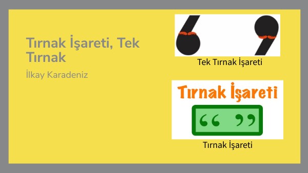 Tek tırnak işareti tırnak işareti içindeki bir cümlede yeniden tırnak içine alınması gereken sözler tek tırnak işareti içine alınır.