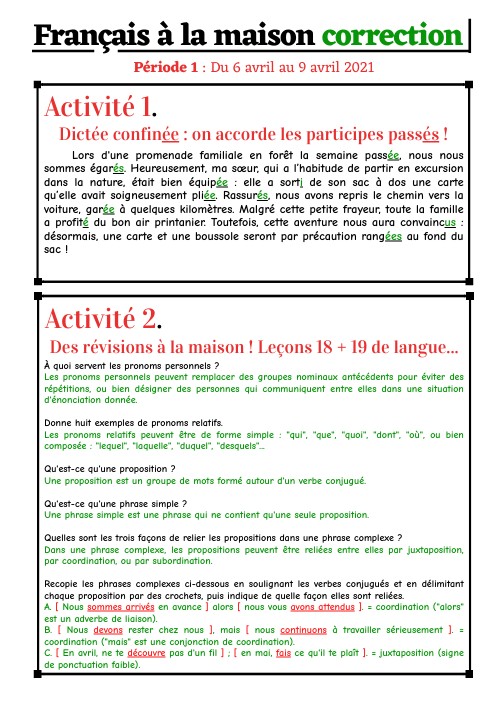 Français à la maison correction