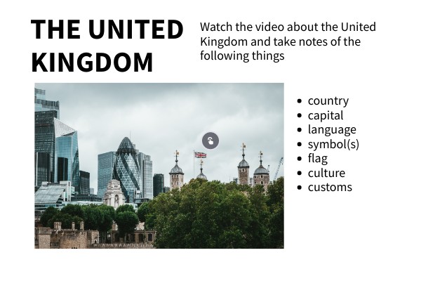 Watch the video about the United Kingdom and take notes of the following things