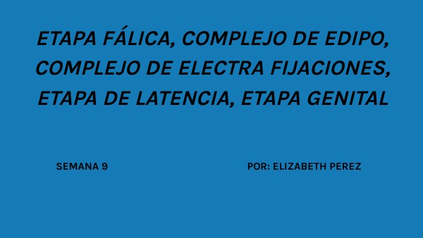 ETAPA FÁLICA, COMPLEJO DE EDIPO, COMPLEJO DE ELECTRA FIJACIONES, ETAPA DE LATENCIA, ETAPA GENITAL