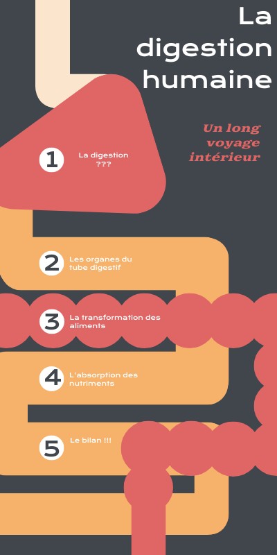 Le tube digestif est un ensemble d'organes très divers. L'intestin est un organe très actif dans différents rôles : - le péristaltisme : l'intestin se contracte pour faire avancer le bol alimentaire - la digestion : transformation des aliments en aliments simples - l'absorption des nutriments : l'intestin a une structure très particulière et sa paroi est une surface d'échange ce qui permet l'absorption maximale des nutriments.