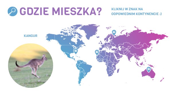 Gdzie mieszkają te zwierzęta? Kliknij w znak na odpowiednim kontynencie :)