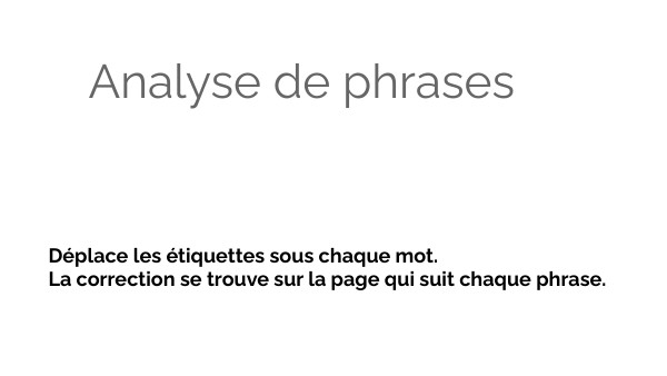 Déplace les étiquettes sous chaque mot. La correction se trouve sur la page qui suit chaque phrase.