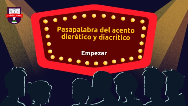 Bienvenidos al concurso de pasapalabra, el tema de hoy es “el acento diacrítico y dierético”. Para ganar solo debes responder correctamente las preguntas que se presentarán a continuación.