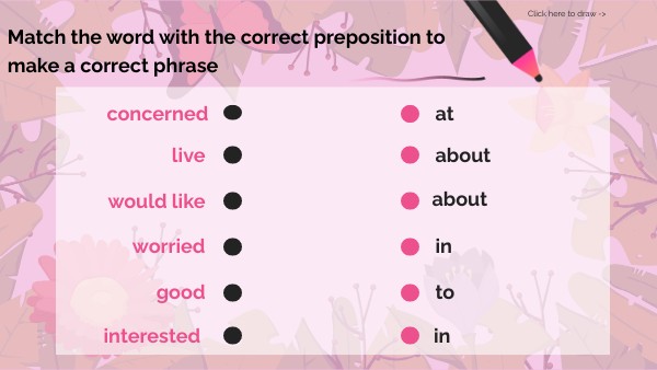 Match the word with the correct preposition to make a correct phrase