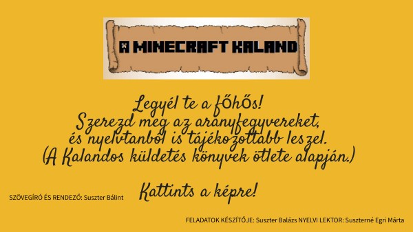Legyél te a főhős! Szerezd meg az aranyfegyvereket, és nyelvtanból is tájékozottabb leszel. (A Kalandos küldetés könyvek ötlete alapján.) Kattints a képre!