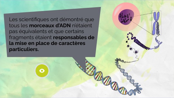 Les scientifiques ont démontré que tous les morceaux d’ADN n’étaient pas équivalents et que certains fragments étaient responsables de la mise en place de caractères particuliers.