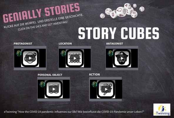 KLICKE AUF DIE WÜRFEL UND ERSTELLE EINE GESCHICHTE.