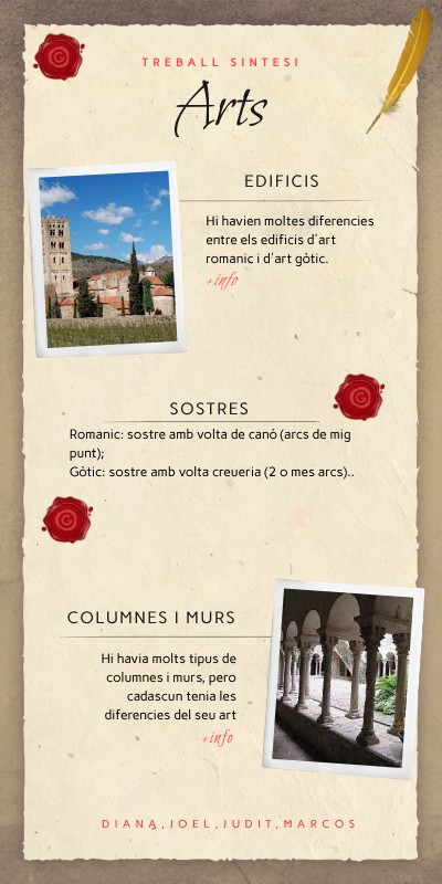 Romanic: columnes gruixudes i baixes, murs molt gruixutsGòtic: columnes altes i primes, murs prims.
