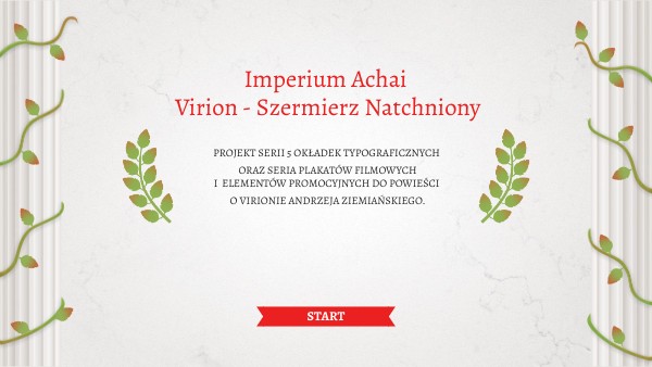 Projekt serii 5 okładek typograficznych Oraz seria plakatów filmowych i elementów promocyjnych do powieści O VIrionie Andrzeja Ziemiańskiego.