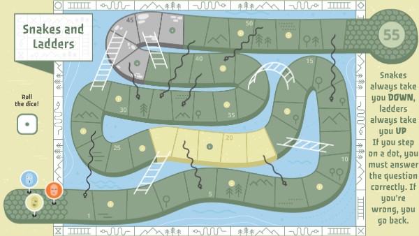 Snakes always take you DOWN, ladders always take you UP If you step on a dot, you must answer the question correctly. If you're wrong, you go back.