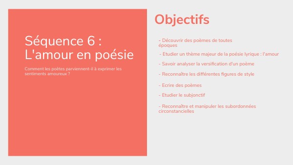 - Etudier un thème majeur de la poésie lyrique : l'amour