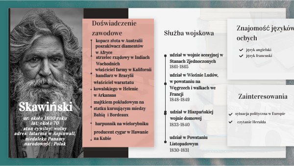 ur. około 1800 rokulat: około 70 stan cywilny: wolny adres: latarnia w Aspinwall, niedaleko Panamy narodowość: Polak