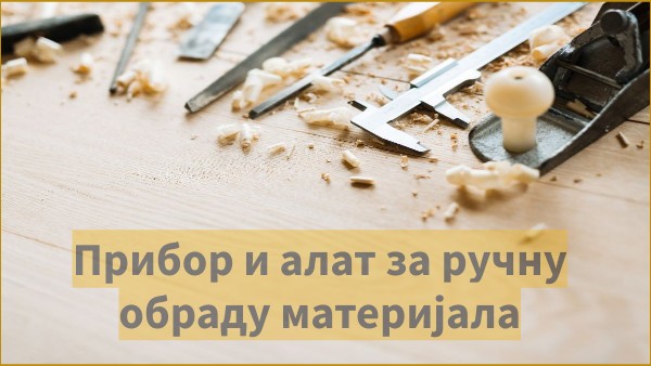 - прибор за мерење и обележавање је потребан на почетку ... - која је разлика између резања и сечења ... алати, - који алати се користе за бушење рупа, - за равнање и брушење, -како се може извести спајање комада дрвета, како ојачати спој, - шта спада у површинску заштиту :)