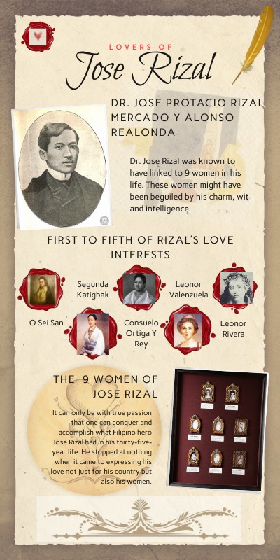 Dr. Jose Rizal was known to have linked to 9 women in his life. These women might have been beguiled by his charm, wit and intelligence.