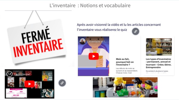 Après avoir visionné la vidéo et lu les articles concernant l'inventaire vous réaliserez le quiz