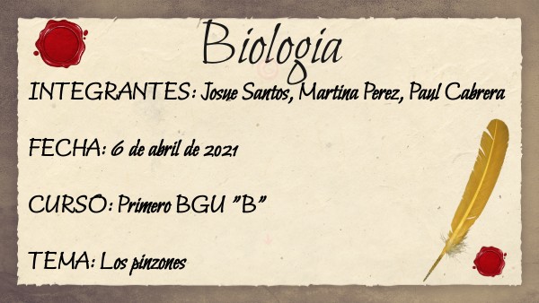 INTEGRANTES: Josue Santos, Martina Perez, Paul Cabrera FECHA: 6 de abril de 2021 CURSO: Primero BGU "B" TEMA: Los pinzones