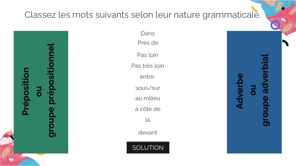 Faites glisser chaque mot ou groupe de mots dans la bonne catégorie.