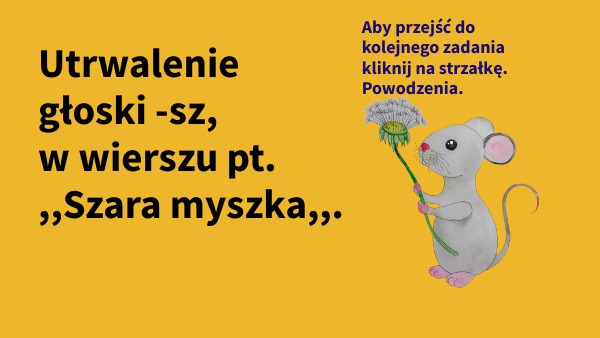 Utrwalenie głoski -sz, w wierszu pt. ,,Szara myszka,,.