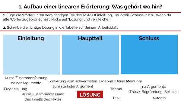 1. Aufbau einer linearen Erörterung: Was gehört wo hin?