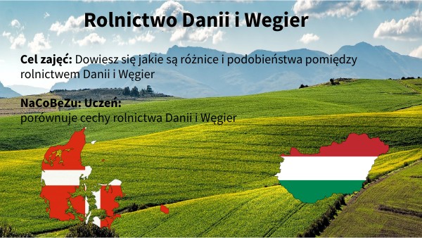 Cel zajęć: Dowiesz się jakie są różnice i podobieństwa pomiędzy rolnictwem Danii i Węgier