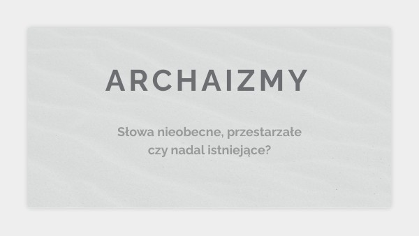 ARCHAIZMY to wyrazy, wyrażenia, ich znaczenia i konstrukcje składniowe, które wyszły z użycia. Współcześnie tych wyrazów się nie używa bądź są stosowane nadal, ale w zmienionej formie gramatycznej lub znaczeniu. Najczęściej archaizmy można spotkać w tekstach pisanych wiele lat temu. Współcześni autorzy również używają archaizmów w celach stylizatorskich lub ekspresywnych.