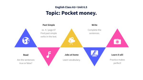 1. I tidied my room ... .2. I made my bed ... . 3. I did the shopping ... . 4. I (opróżniłem kosz na śmieci) ... . 5. Your own idea - twój własny pomysł.