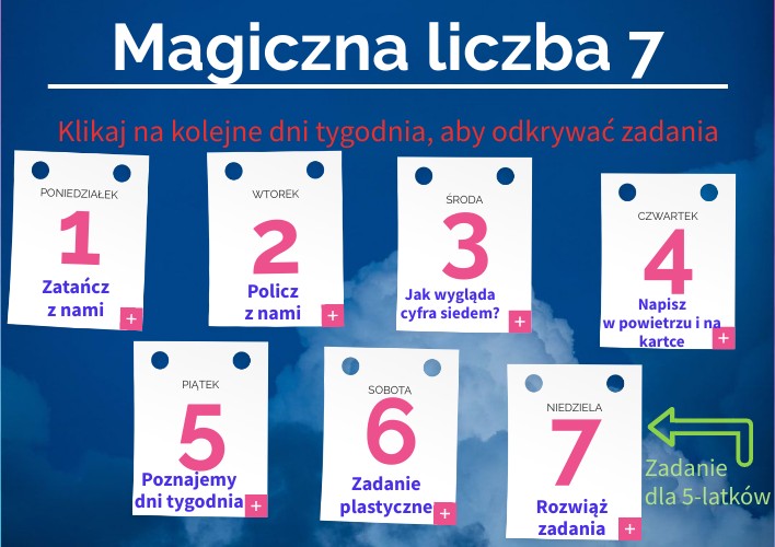 Klikaj na kolejne dni tygodnia, aby odkrywać zadania