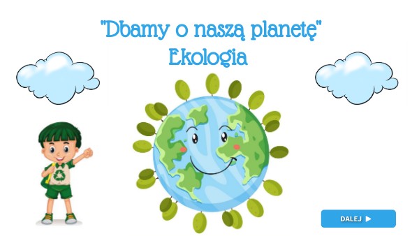 Cześć! Mam na imię Maciek. Wiem, że przez cały tydzień bardzo ciężko pracowaliście i poznaliście, w jaki sposób dbać o Naszą planetę Ziemię. Ja również mam dla Was kilka zadań. Powodzenia!