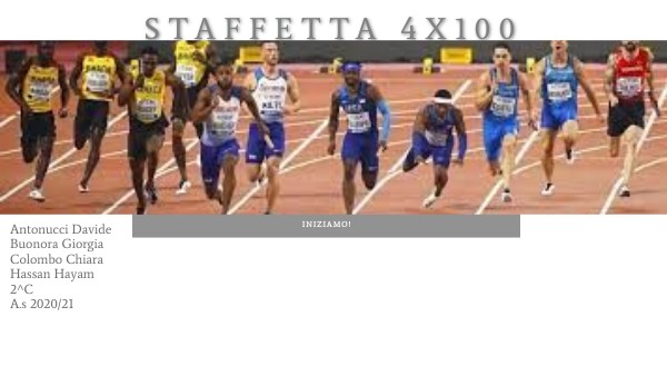 La strategia più comune nella staffetta con quattro persone è mettere il più veloce come ultimo staffettista, il secondo più veloce come primo, il terzo più veloce come secondo e quello più lento come terzo. Il regolamento prevede che il testimone che gli atleti della staffetta si scambiano deve essere lungo 30 cm e con un peso di 50 g La staffetta 4x100 viene disputata da 4 atleti per squadra. Ogni frazionista percorre 100 m prima di dare il cambio al compagno. Il passaggio del testimone avviene nella zona di cambio.Ogni squadra deve concludere la gara nella stessa corsia occupata al momento della partenza.