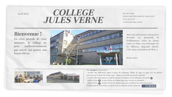 Dans cette présentation, vous pourrez découvrir les personnels de l'établissement, visiter les locaux, entrer en classe, vous renseigner sur les différents dispositifs (SEGPA, ULIS, classe externalisée de l'IEM...). Bonne visite !