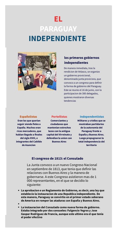 - La instauracion del Consulado como nueva forma de gobierno. Estaba integrado por dos consules: Fulgencio Yegros y Jose Gaspar Rodriguez de Francia, aunque este ultimo era el que tenia el poder efectivo