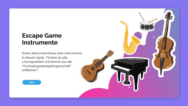 Nutze deine Kenntnisse über Instrumente in diesem Spiel. Findest du alle Lösungszahlen und kannst aus der "Orchestergrabengefangenschaft" entfliehen?
