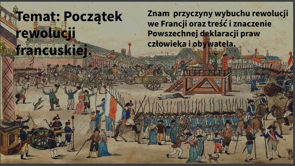 Na lekcji dowiesz się: - Dlaczego obalono we Francji monarchię? – Jak wyglądała sytuacja we Francji przedwybuchem rewolucji ? – Jakie stany społeczne istniały we Francji? – Kiedy wybuchła rewolucjia francuska? – Po co uchwalono Deklaracjię praw człowieka i obywatela?
