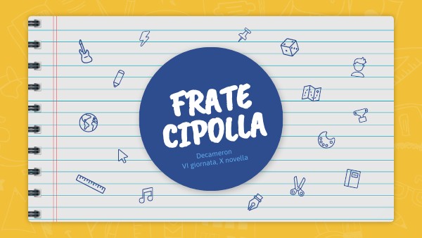 […] Certaldo, come forse saprete, è un castello della Val d’Elsa posto nella nostra campagna che, benché piccolo, è abitato da uomini nobili e ricchi. Un frate di nome Cipolla, dei frati di sant’Antonio, era solito recarvisi ogni anno a chiedere l’elemosina, poiché se ne ricavava molto. Egli vi veniva accolto volentieri, forse anche per via del nome, dato che in quei luoghi il terreno produce cipolle famose in tutta la Toscana.