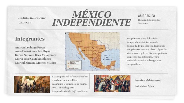 - M. (s. f.). Resumen México Independiente, características. Acerca de México. Recuperado 8 de abril de 2021, de https://www.acercademexico.com/mexico-independiente.html#:%7E:text=El%20periodo%20comprendido%20al%20t%C3%A9rmino%20de%20la%20guerra,en%20una%20situaci%C3%B3n%20ca%C3%B3tica%20tanto%20social%20como%20pol%C3%ADtica.