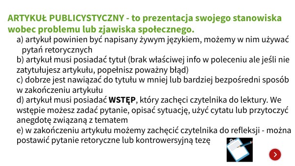 ARTYKUŁ PUBLICYSTYCZNY - to prezentacja swojego stanowiska wobec problemu lub zjawiska społecznego.