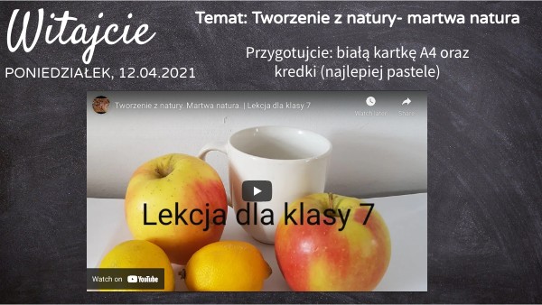 Praca do wykonania: narysuj martwa naturę, może to być, ta przedstawiona w filmie, lub inna, Twój układ. Na prace czekam do 19 kwietnia 2021