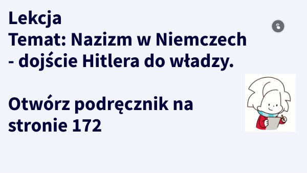 Lekcja Temat: Nazizm w Niemczech - dojście Hitlera do władzy. Otwórz podręcznik na stronie 172