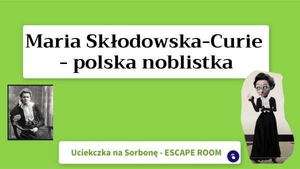 Wcielasz się w postać Marii Skłodowskiej-Curie, wybitnej polskiej uczonej, która jako jedyna kobieta w historii uzyskała dwukrotnie Nagrodę Nobla. Spróbuj dostać się na Sorbonę - słynną paryską uczelnię, na której studiowała Maria Skłodowska-Curie. Znadź potrzebne do tego cyfry - kod.Żeby rozpocząć znajdź szkło laboartoryjne na zdjęciu.