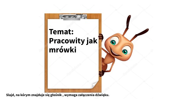 Na podstawie filmu lub czytanki odpowiedzcie pisemnie w zeszycie na pytania:-Co robiły latem mrówki, a co robił konik?-Jak zachowały sie mrówki, gdy zimą przyszedł do nich konik? Zróbcie to pod notatką z końcówką - ówka (w kolejnych slajdach)Przeczytacie na lekcji online. NAUCZCIE SIĘ CZYTAĆ BAJKĘ, CHĘTNI PRZECZYTAJĄ JĄ NA LEKCJI ONLINE.