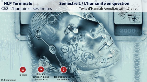 Prenez des notes sur ce que chacune de ses émissions disent - de l'humain, de ses limites - de nos rapports avec l'objet, avec le robot, le progrès, le corps - de la fiction (littérature et cinéma: n'oubliez pas cette dimension de l'essai)