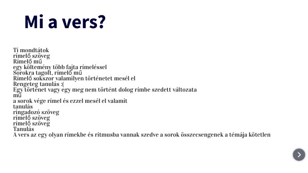 A vers az egy olyan rímekbe és ritmusba vannak szedve a sorok összecsengenek a témája kötetlen