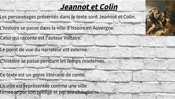 Les personnages présentés dans le texte sont Jeannot et Colin.