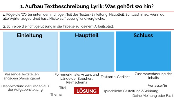 1. Aufbau Textbeschreibung Lyrik: Was gehört wo hin?