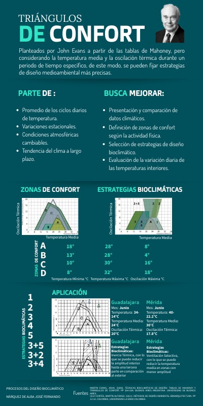 MARTIN EVANS, JOHN. (2000). TÉCNICAS BIOCLIMÁTICAS DE DISEÑO: TABLAS DE MAHONEY Y TRIÁNGULOS DE CONFORT. PP 31A-33A. BUENOS AIRES ARGENTINA. UNIVERSIDAD DE BUENOS AIRES.CELY CORTÉS, MARTÍN ALFONSO. (2011). MÉTODOS DE DISEÑO AMBIENTAL EBNARQUITECTURA. PP 13-15. COLOMBIA, UNIVERSIDAD LA GRAN COLOMBIA.