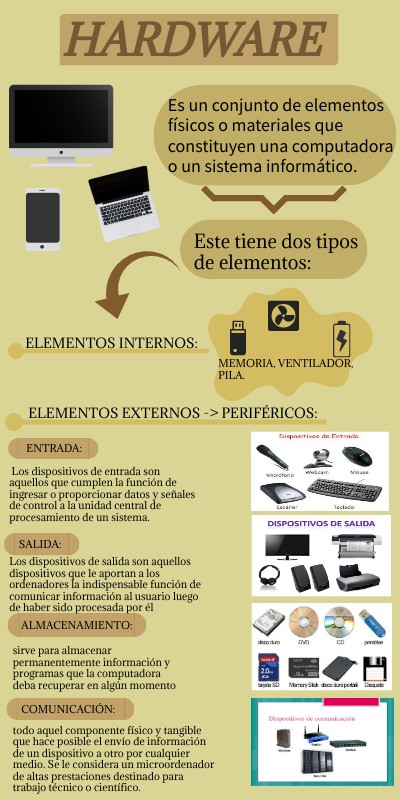Es un conjunto de elementos físicos o materiales que constituyen una computadora o un sistema informático.