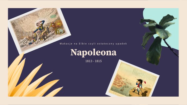 4. Abdykacja Napoleona i zesłanie na wyspę Elbę 5. Sto dni Napoleona i bitwa pod Waterloo 6. Koniec epoki Napoleona - śmierć na wyspie św. Heleny